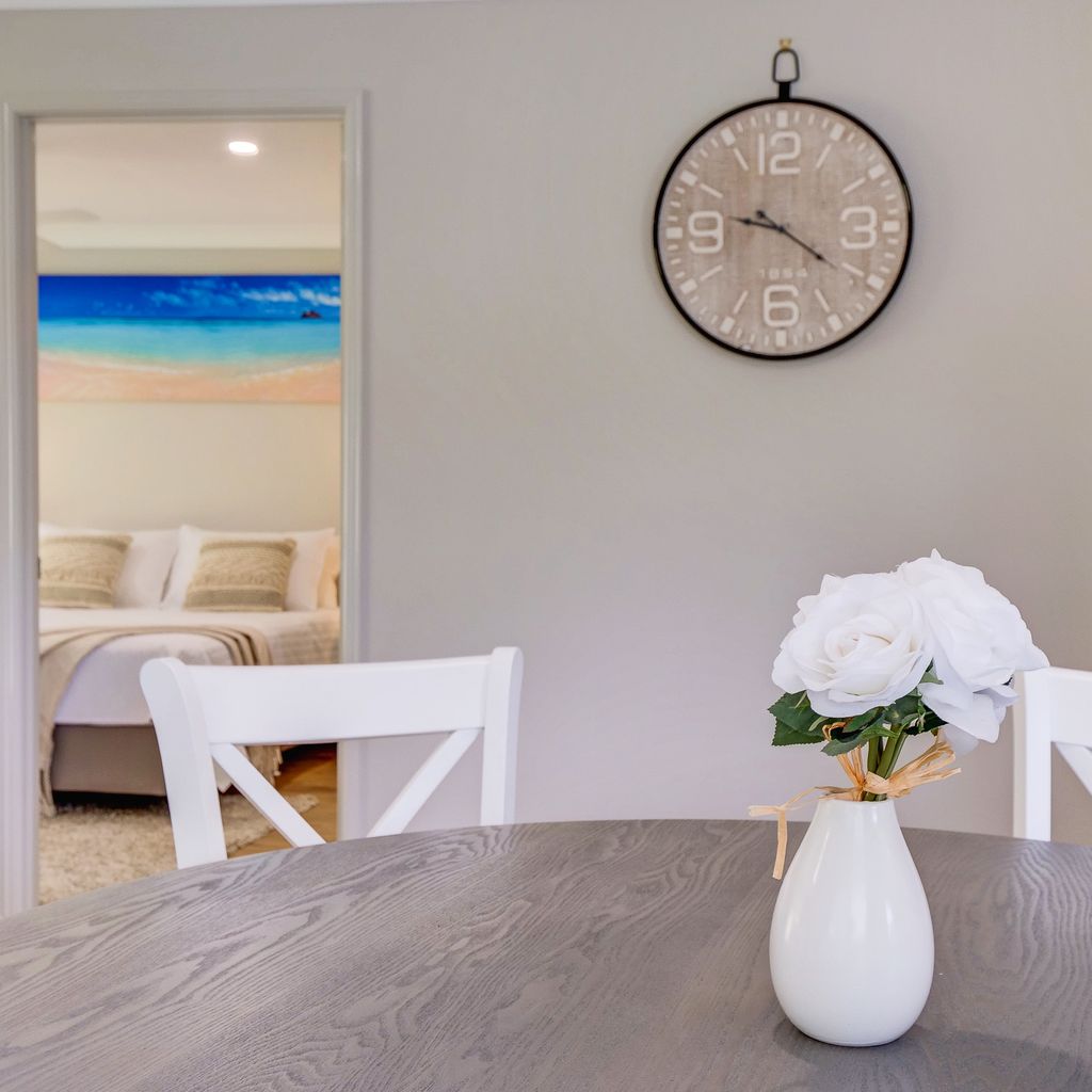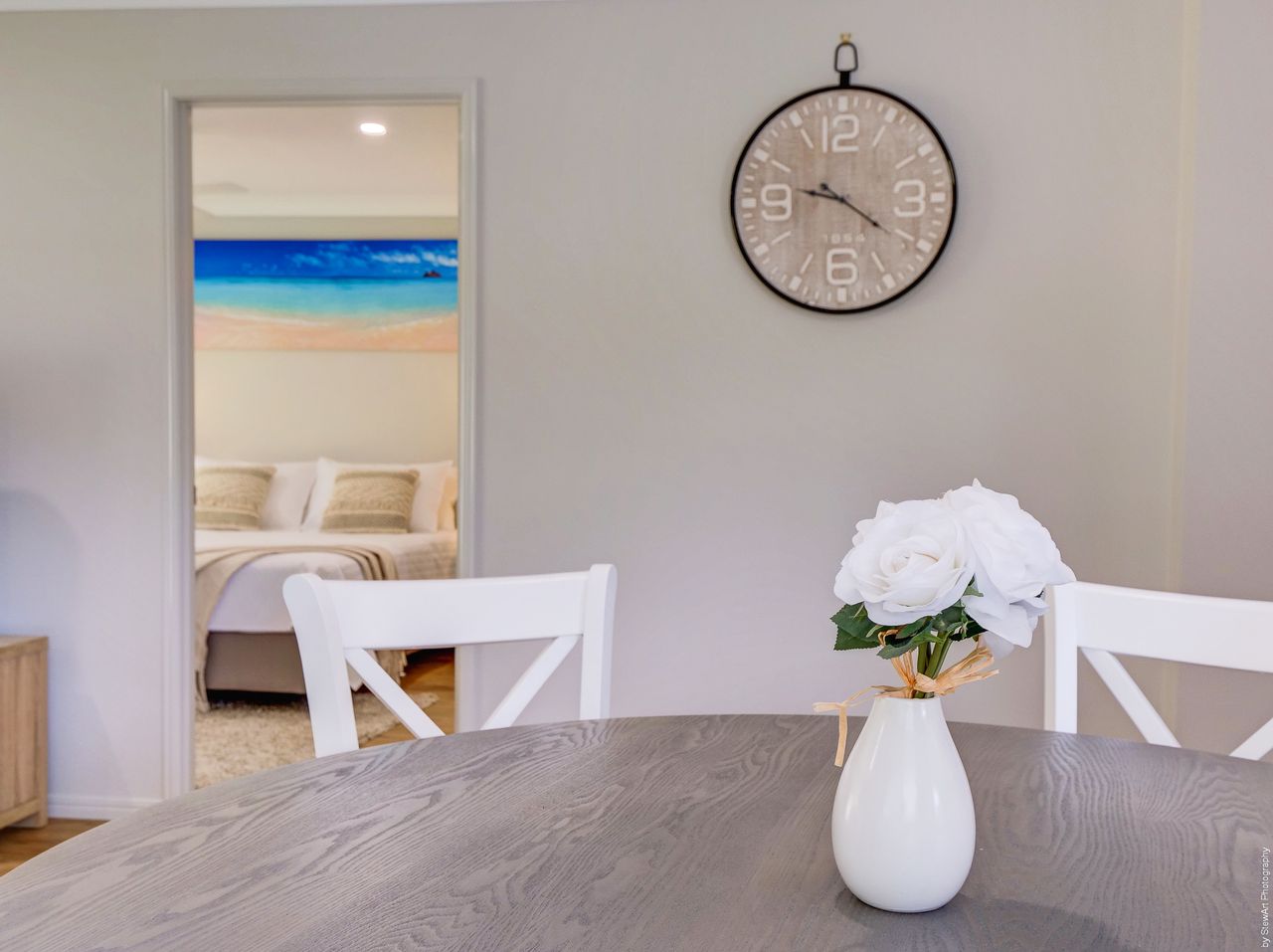 Enjoy the charm of coastal interiors in this newly built and fully furnished holiday home. Relax in the open plan dining and lounge area, complete with air conditioning and a Smart TV.
