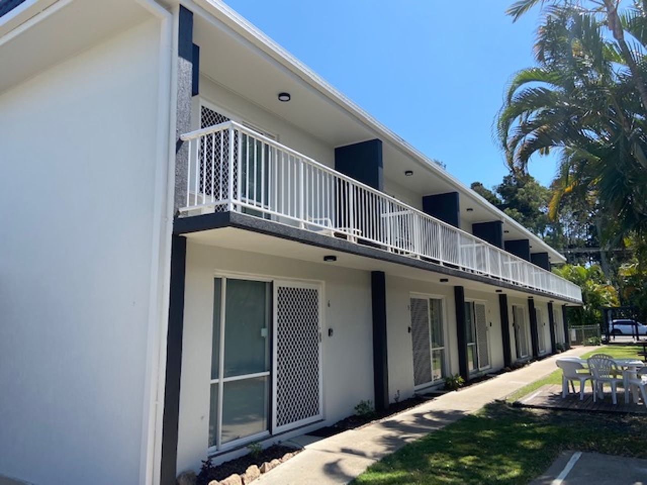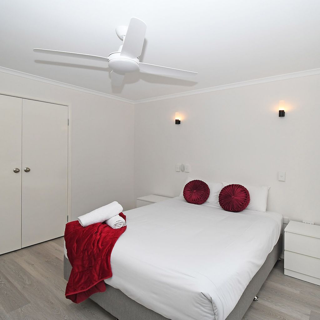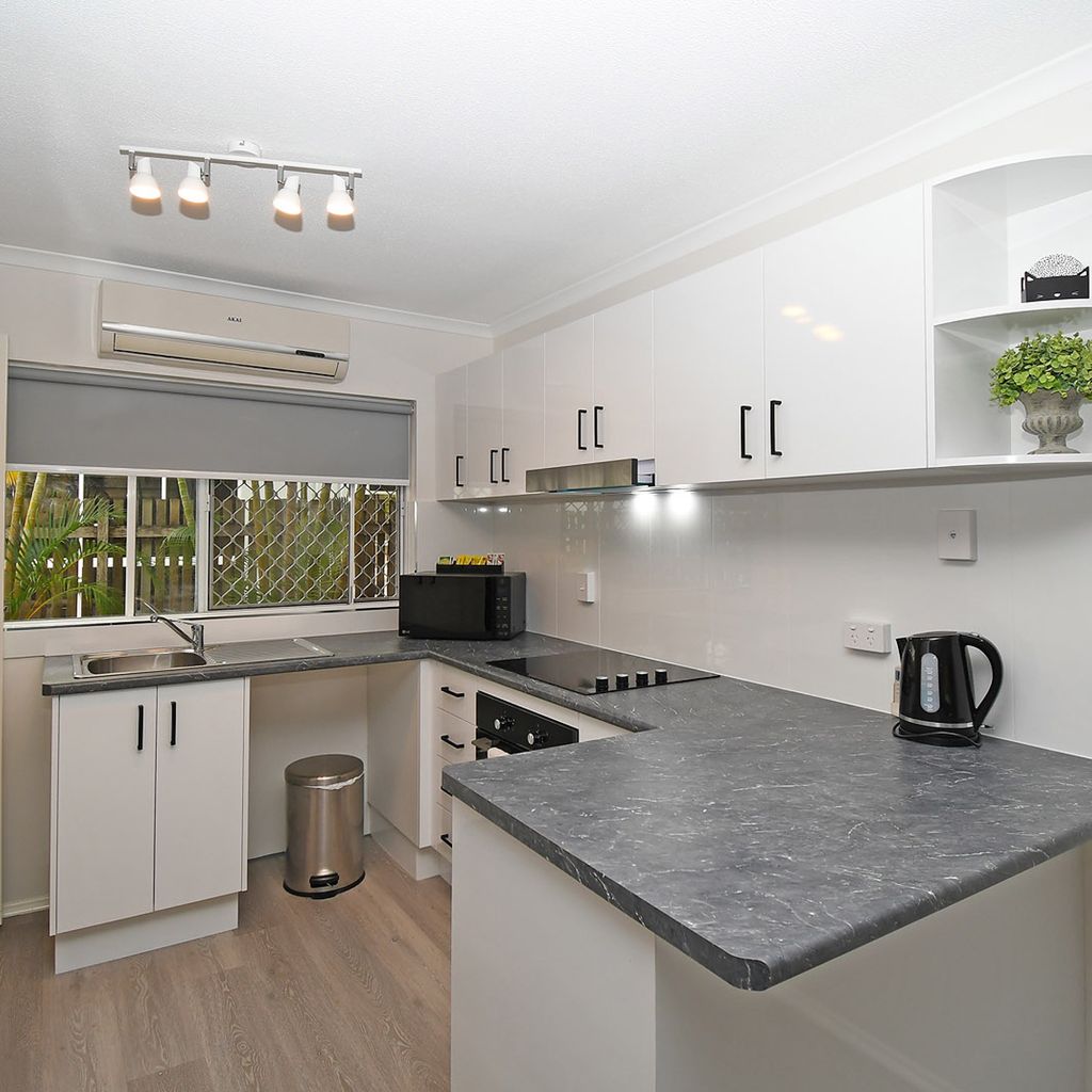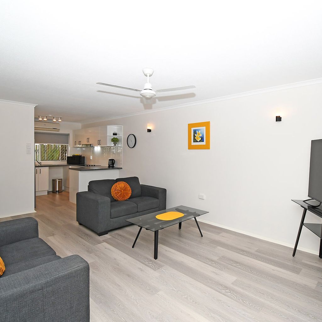 Our kitchens are equipped with a gas cooktop and oven, microwave, and refrigerator/freezer, while each laundry includes a washing machine, clothes hoist, and ironing board. Undercover parking is available for cars, with additional space for trailers and boats. Enjoy the outdoor amenities, including a gas barbecue, outdoor eating area, and a swimming pool set in tropical surrounds.