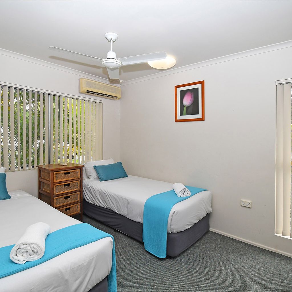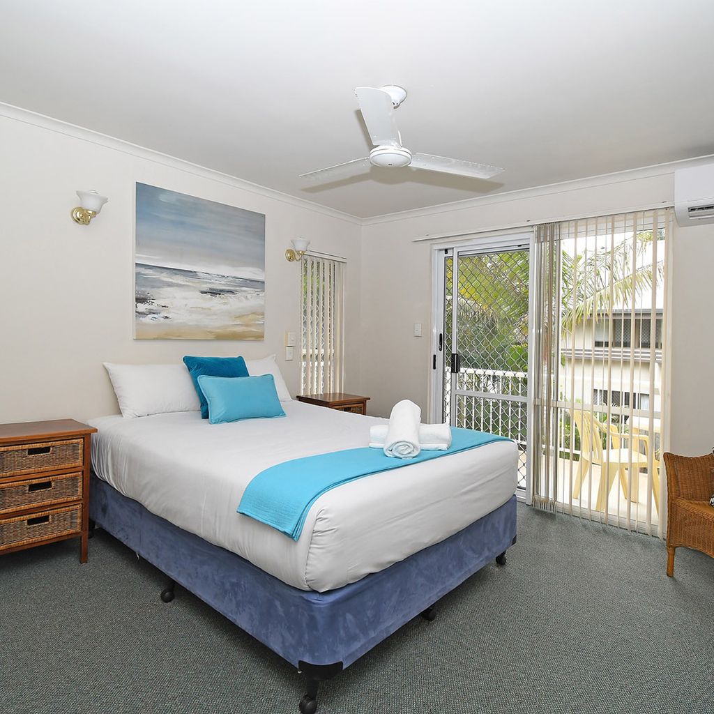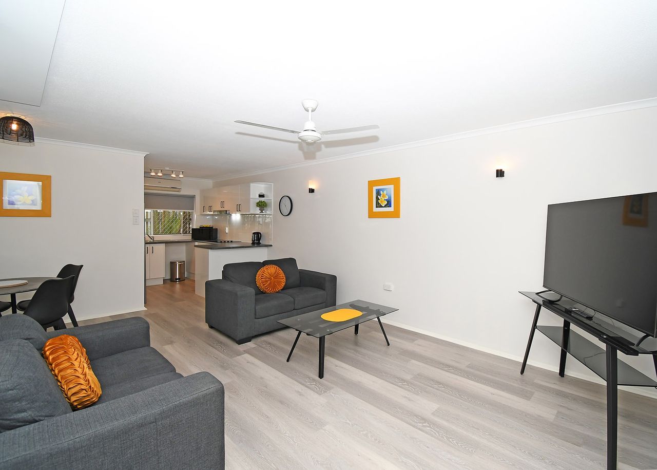 Our kitchens are equipped with a gas cooktop and oven, microwave, and refrigerator/freezer, while each laundry includes a washing machine, clothes hoist, and ironing board. Undercover parking is available for cars, with additional space for trailers and boats. Enjoy our outdoor amenities, including a gas barbecue, outdoor eating area, and a swimming pool set in tropical surrounds.