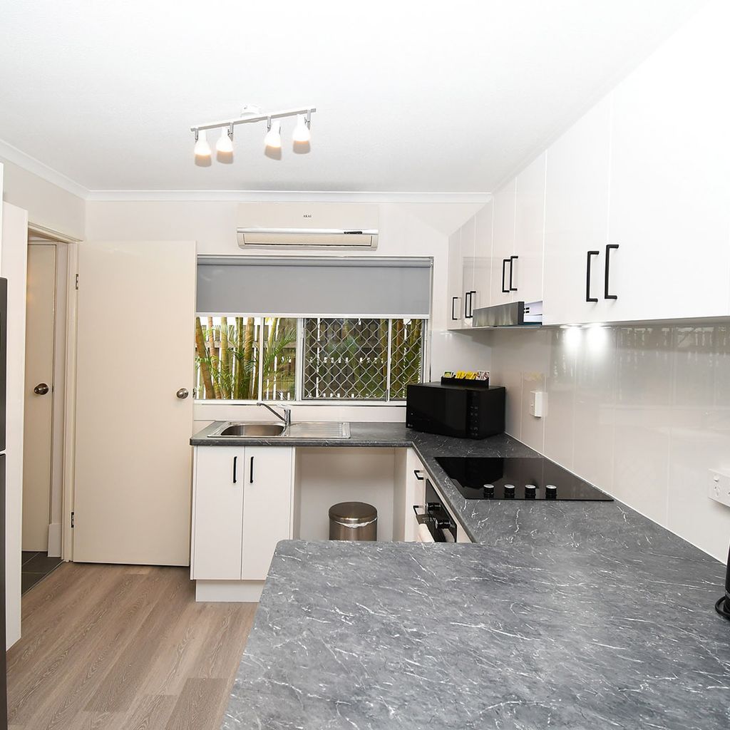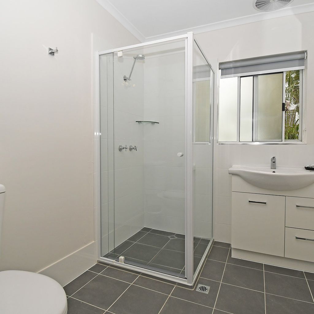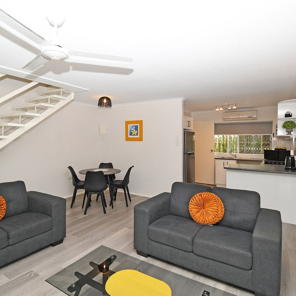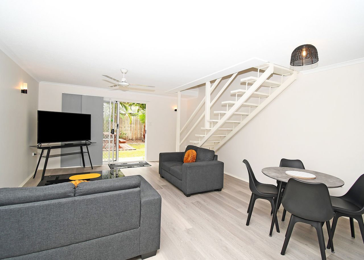 Our kitchens are equipped with a gas cooktop and oven, microwave, and refrigerator/freezer, while each laundry includes a washing machine, clothes hoist, and ironing board. Undercover parking is available for cars, with additional space for trailers and boats. Enjoy our outdoor amenities, including a gas barbecue, outdoor eating area, and a swimming pool set in tropical surrounds.