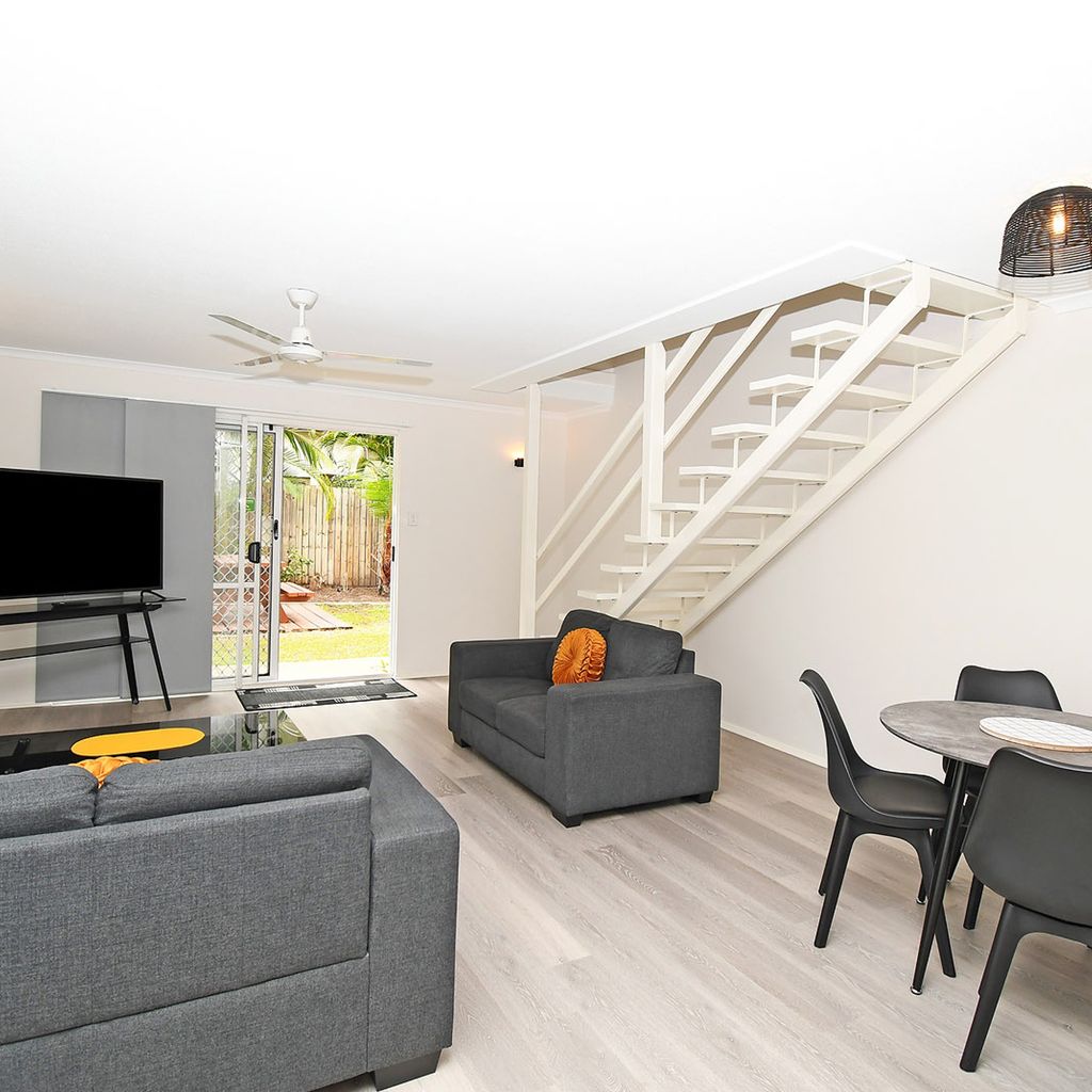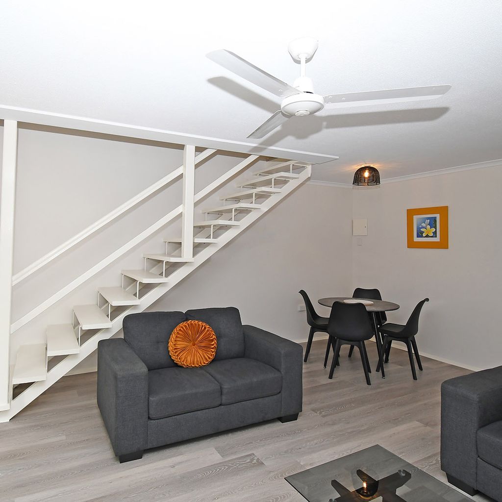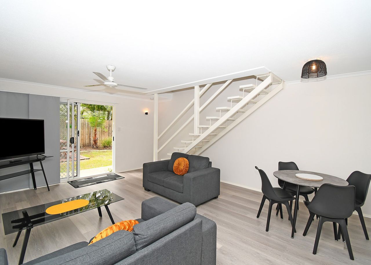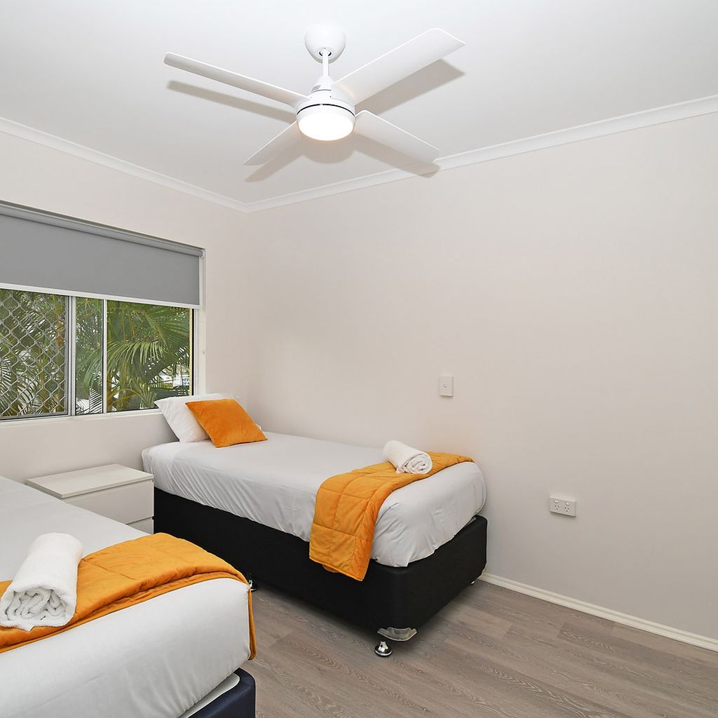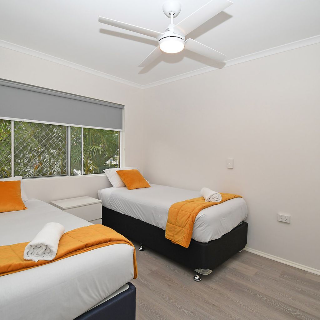 The kitchens are equipped with a gas cooktop and oven, microwave, and refrigerator/freezer. In each laundry, you'll find a washing machine, clothes hoist, and ironing board. For your parking needs, we provide undercover parking for cars, along with space for trailers and boats. Enjoy the outdoor amenities, including a gas barbecue, outdoor eating area, and a swimming pool set in tropical surrounds.