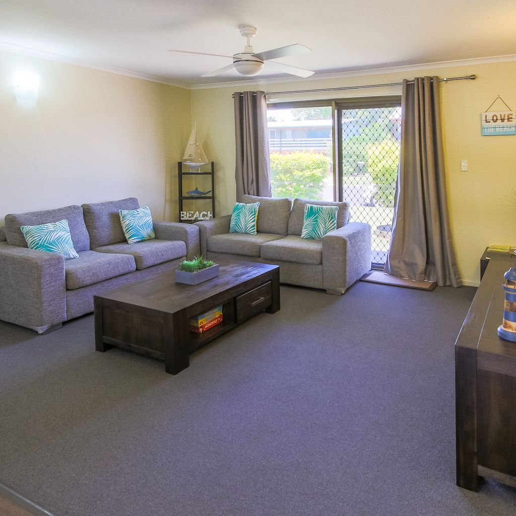 -Main Bedroom -Queen bed and Air conditioning. -Second Bedroom - Queen bed and Air conditioning. -Third bedroom - 2x Single beds -Fourth bedroom - 2x King single beds and Air conditioning. -Bathroom with Bath tub -Ceiling fans throughout. -Lounge with Air conditioning, Television, DVD player, Assorted DVD's and board games. -Fully equipped Kitchen with Microwave. -Laundry with Washing machine, Clothes dryer, Iron & Ironing board. -Outdoor covered entertainment area with Gas BBQ. -Double carport with room for a boat -Inground Swimming Pool. -Sorry Pets are STRICTLY not permitted - Service animals specifically trained to aid a person with a disability are welcome by prior arrangement -All in walking distance to local Restaurants/Cafes, Hotels, Sports club, swimming beaches and only a short drive to Local Shops, WetSide Water Park, Shopping Centres, boat ramps and the ferry to Fraser Island.