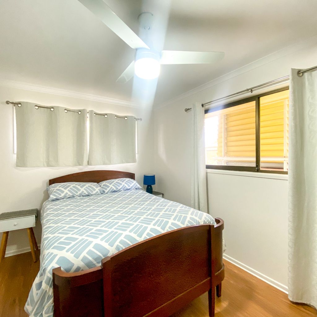 Low set newly renovated, 3 bedrooms, 2 bathrooms, sleep 9, kitchen, lounge, dining, aircon in lounge, 2 TVs, DVD, gas BBQ, large undercover deck, fully screened and some security screens, double lock up garage, fully fenced yard, outside pet friendly