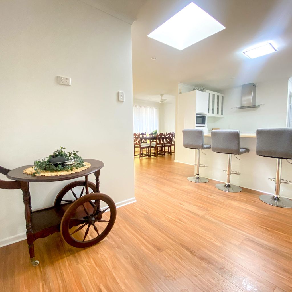 The renewed kitchen is equipped with new appliances, including a dishwasher, and seamlessly opens out onto an expansive covered entertainment area. Fire up the gas BBQ and enjoy alfresco dining with plenty of seating for you and your guests.