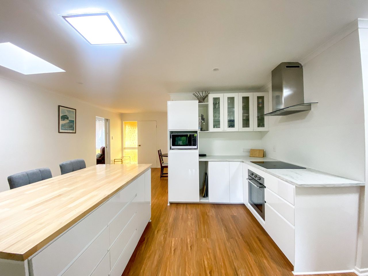 We had four generations of family members and the property catered well for our needs. Pros-Living areas are well spaced/outdoor undercover area is excellent for entertaining. -New kitchen is fully equipped with everything that we required (even kids plates). -A shower suitable for elderly/disabled. -150m shops/water. Cons-Although functional some furnishings are old and diminish the coastal accomodate vibe/comfort. -Parking for boat/trailer off street is limited, garage is for small cars only.