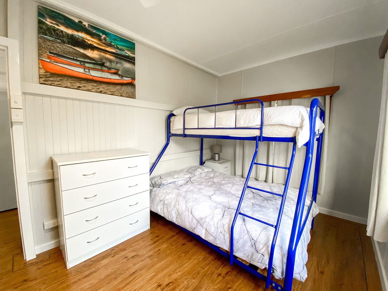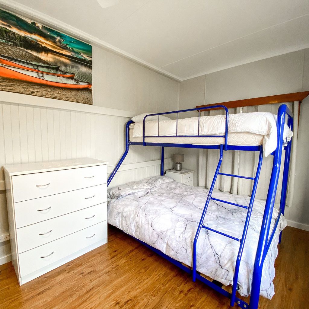 Catherine Dennis - 30th April 2023A comfortable stay for 4 nights with two couples 60+. The unit was clean and classic in a seventies style which we loved. The kitchen was well equipped and the bathroom spacious. The days were cooler allowing us to enjoy the sun on the deck. The sleeping accommodation was a queen bed which was very comfortable, and the second bedroom a double with single over bunk style. The bunks made it difficult due to our age and mobility and this should be considered when booking.