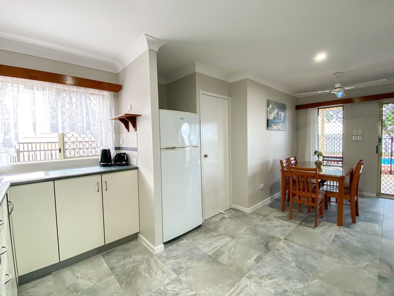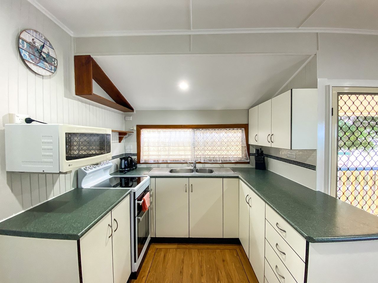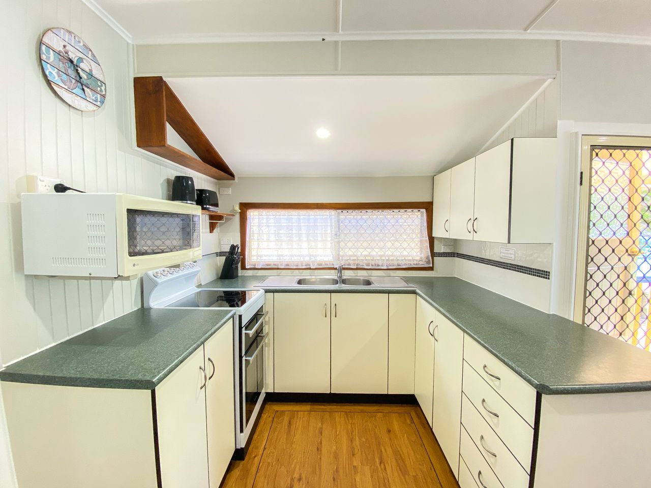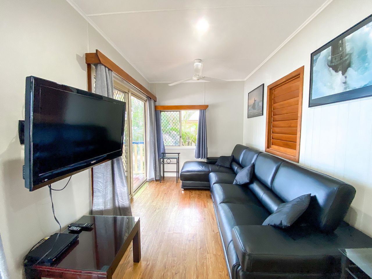 -Equipped with a kitchenette, lounge area with Smart TV/DVD/CD player, fully security screened, fans, and a gas BBQ for alfresco meals.