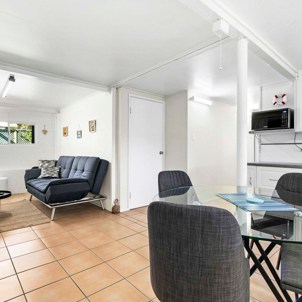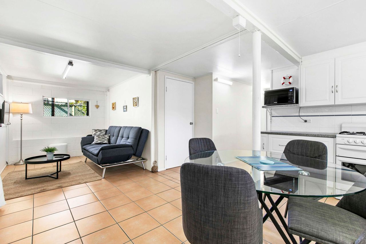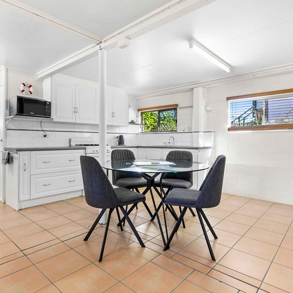 The lower level of "OceanViews on Burrum," accessible via external side and back stairs, mirrors the upstairs in terms of comfort and leisure, but with added versatility. It features a fully equipped kitchen, perfect for when you want to double down on the cooking extravaganza.