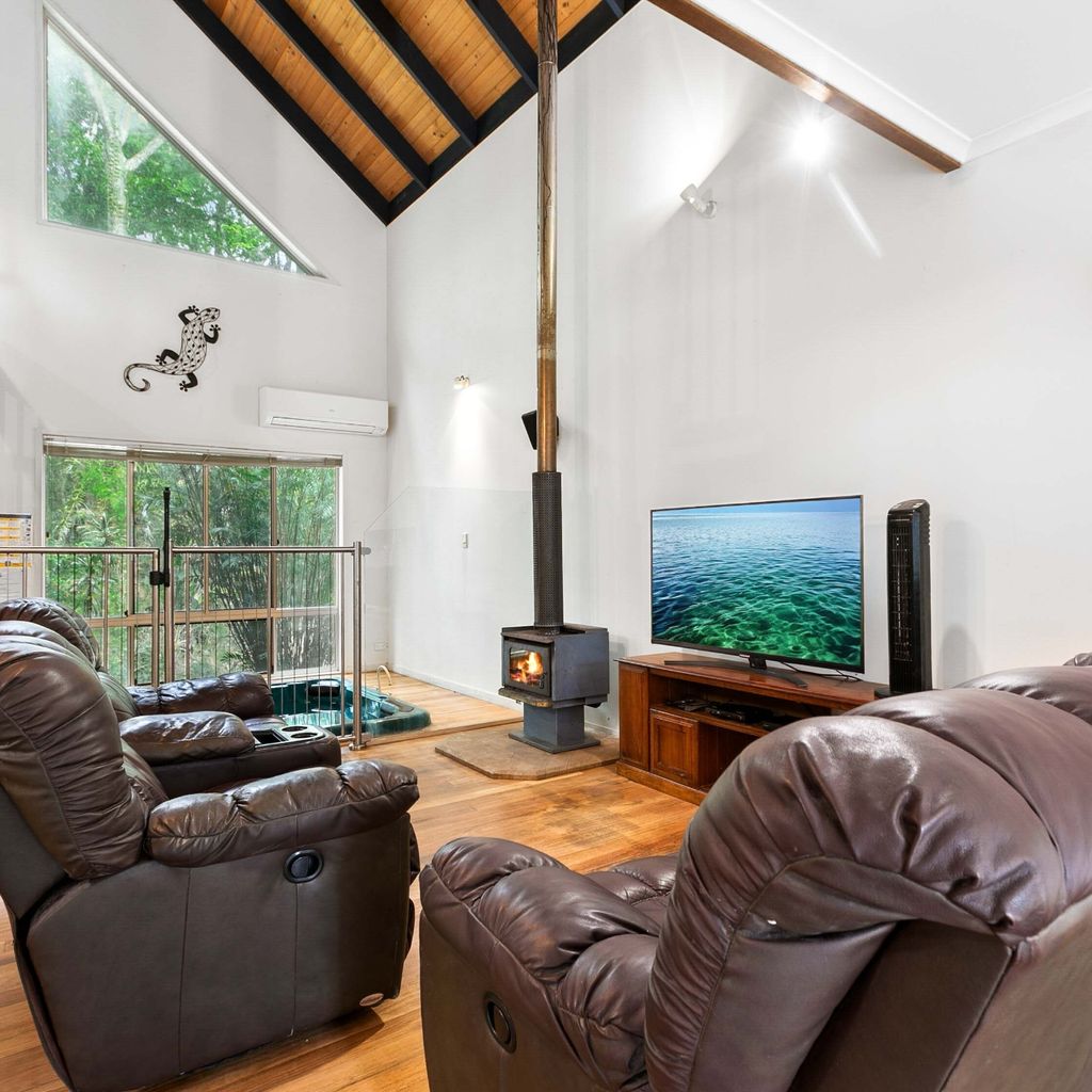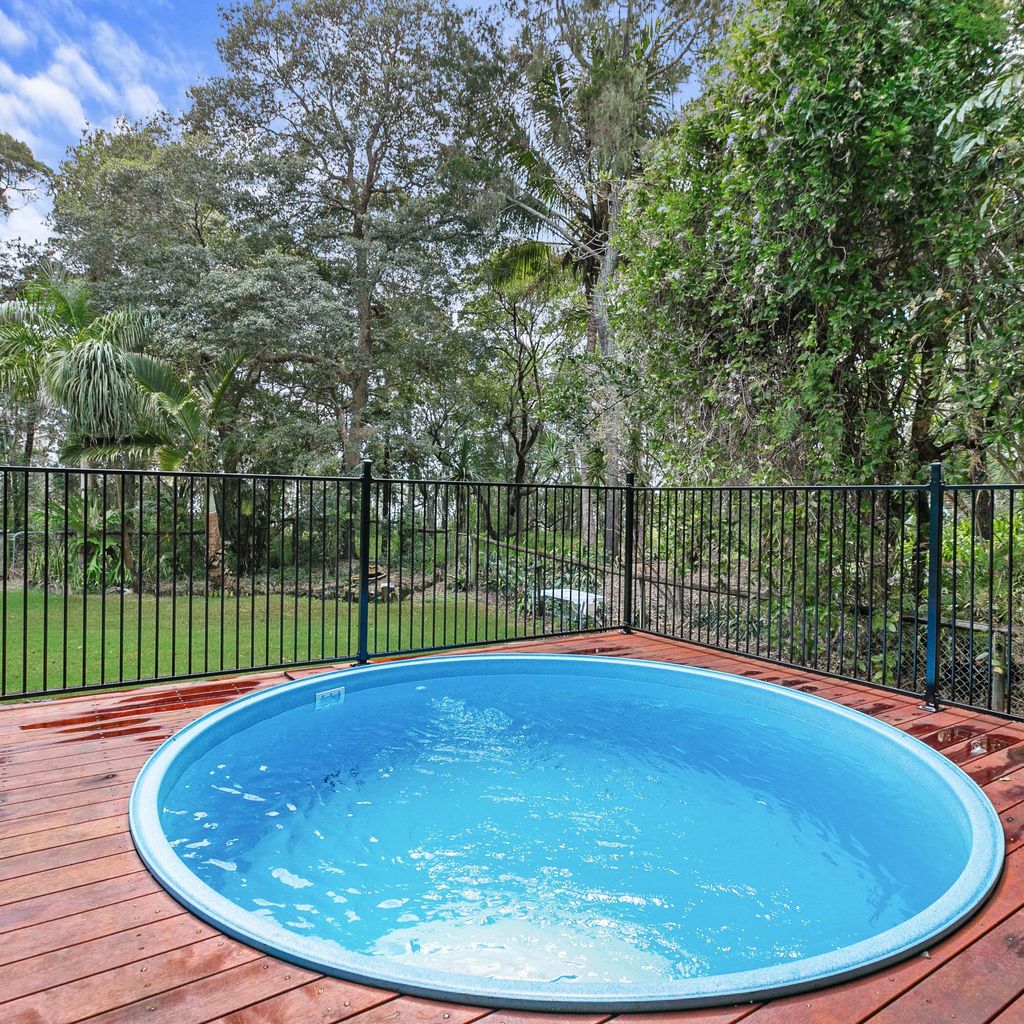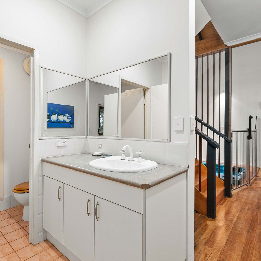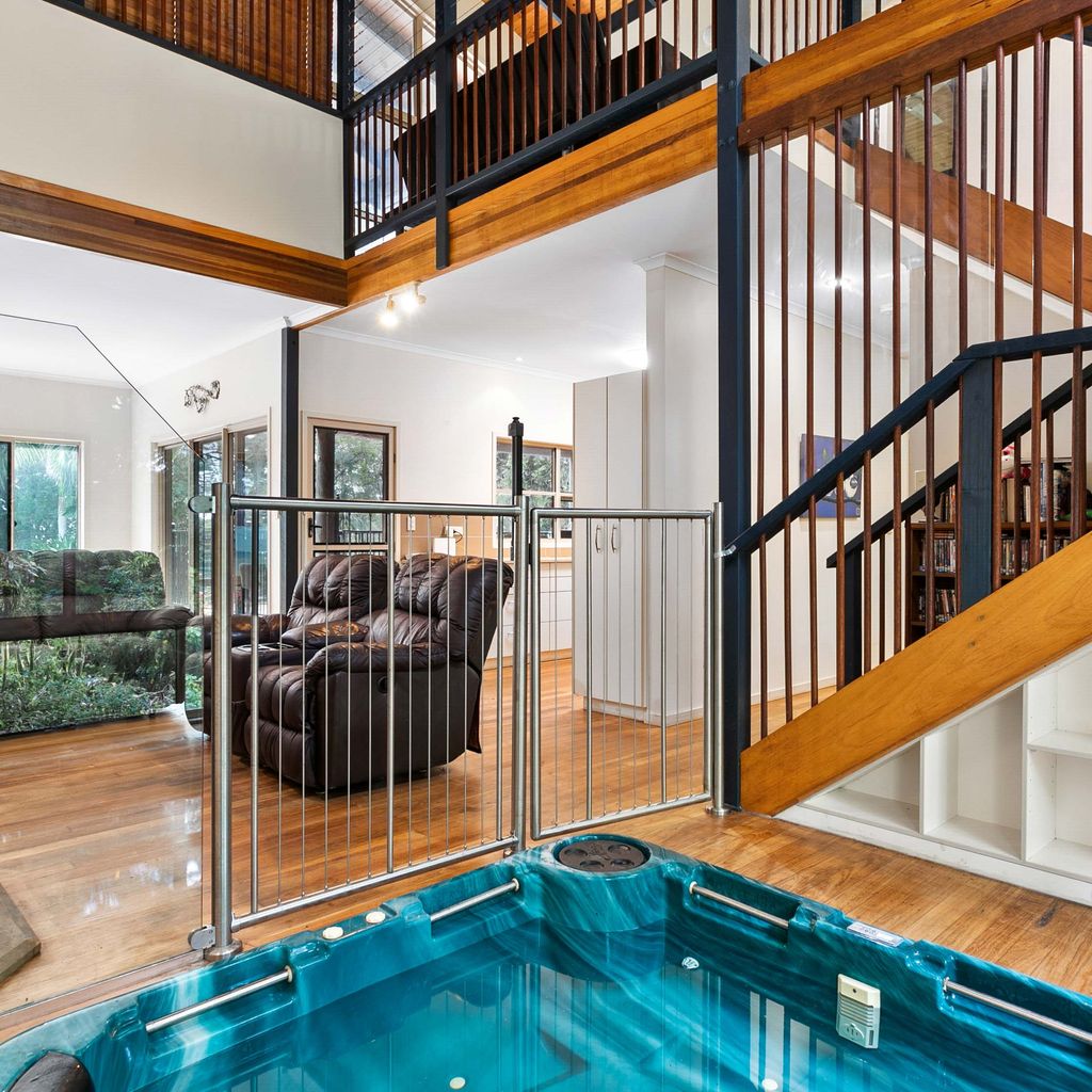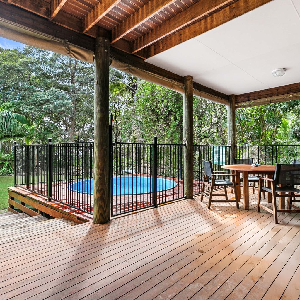 The outdoor area is truly a highlight. Imagine spending your days lounging by the sparkling plunge pool, surrounded by towering trees and the sounds of the ocean in the distance. Whether you’re enjoying an afternoon BBQ or simply unwinding in the sun, the downstairs entertaining area provides the perfect spot for outdoor living. When you’re ready for the beach, just take a short stroll through the private bush path and you’ll find yourself on the soft sands of Toogoom’s peaceful shoreline – a true escape from the everyday hustle and bustle.