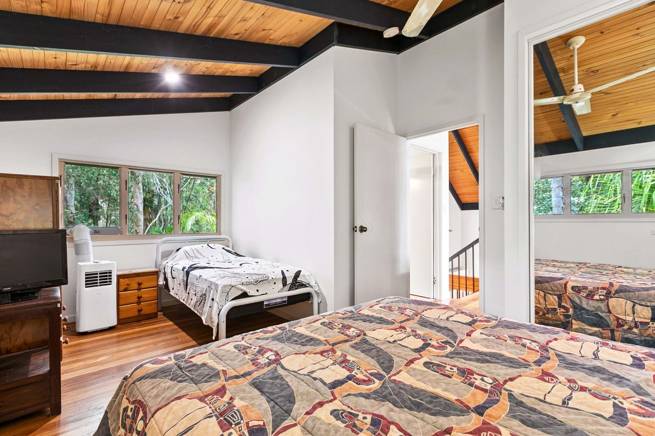 Inside, the home offers three spacious bedrooms, all air-conditioned for your comfort. The master bedroom features a luxurious queen bed and an intimate setting for a restful night’s sleep. The second bedroom is equally inviting, with a queen bed and an additional single, perfect for families or friends. The third bedroom offers two single beds, ideal for kids or additional guests. Each room offers a peaceful retreat after a long day exploring the beach, with views of the surrounding forest that make you feel miles away from the world.