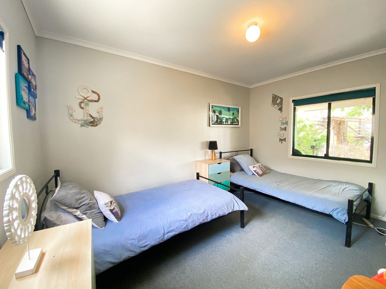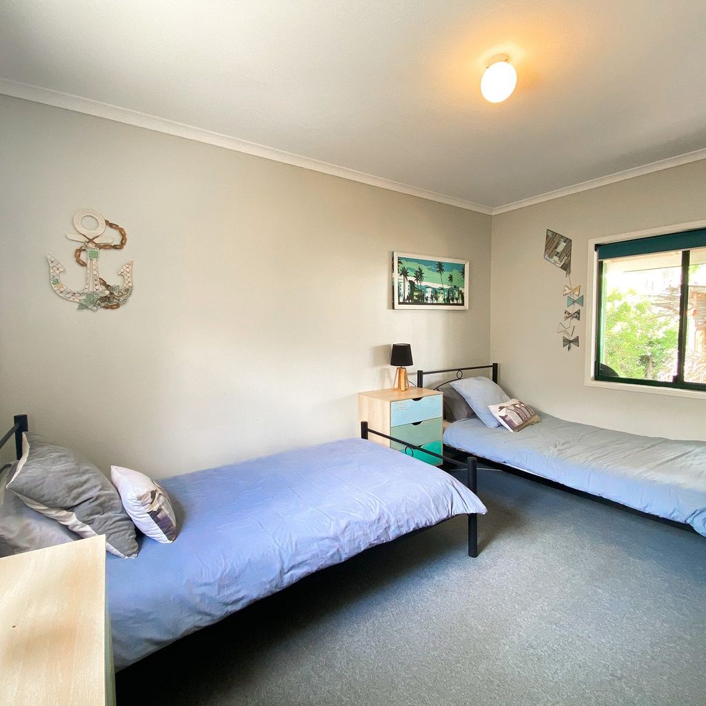 Retreat to the comfort of the main bedroom, featuring a queen bed and ensuite bathroom for added convenience. A second bedroom with two king single beds offers additional sleeping space, ensuring a restful night's sleep for all guests.