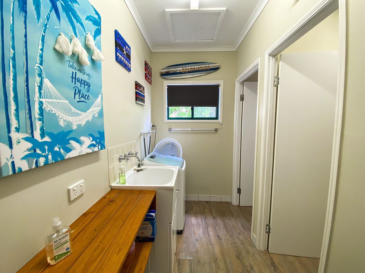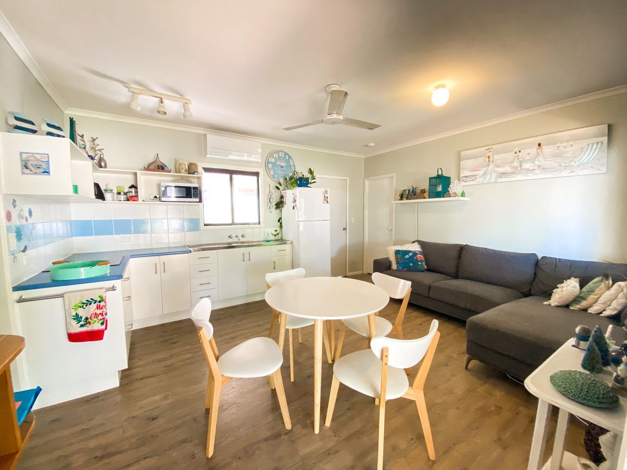 Step into the welcoming open plan kitchen/living area, where you'll find everything you need for a comfortable stay. The cozy living space is perfect for unwinding after a day of beachside adventures. Washing machine and outdoor shower to wash the sand off from a great day at the beach.
