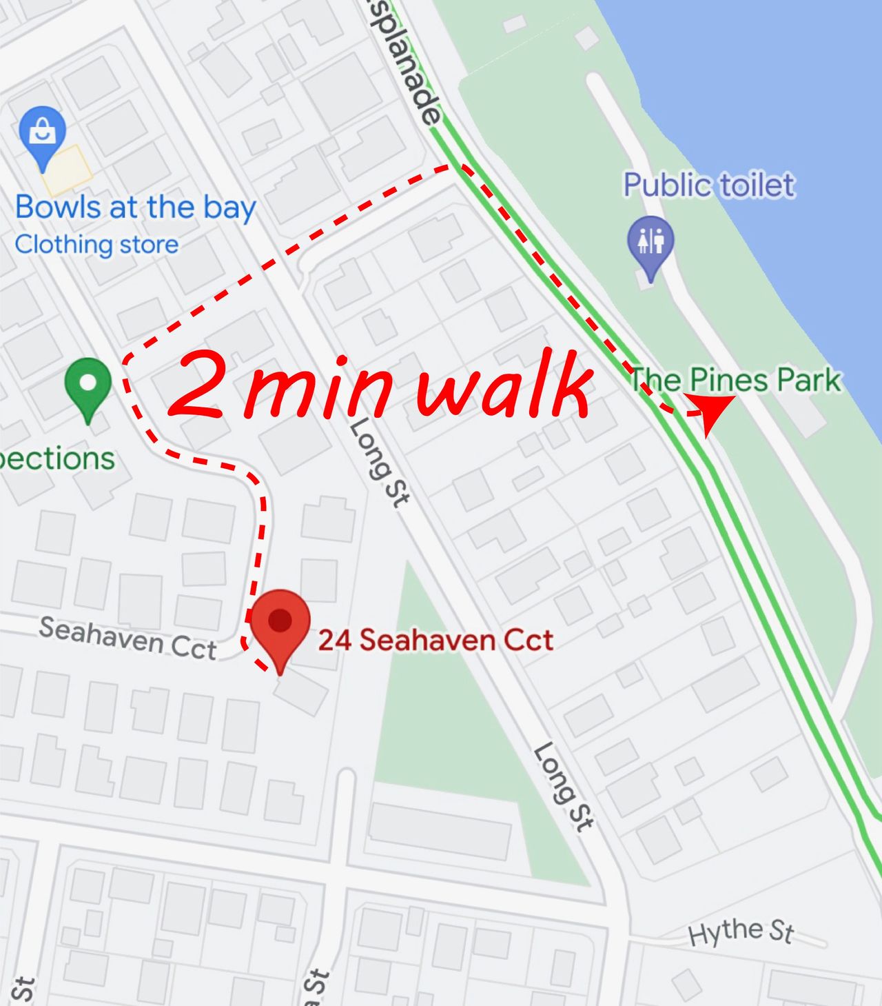 Located in a new Prestigious Ocean Blue Estate which is quiet and safe. Turn right onto the Esplanade and you are relaxing 15 minute walk to the Wetside Water Park for kids to enjoy waterslides, a splash pad, wave machine (free of charge from the Council). Or travel a short distance further where you will be greeted by some of Hervey Bays Finest coffee and eateries and supermarkets.